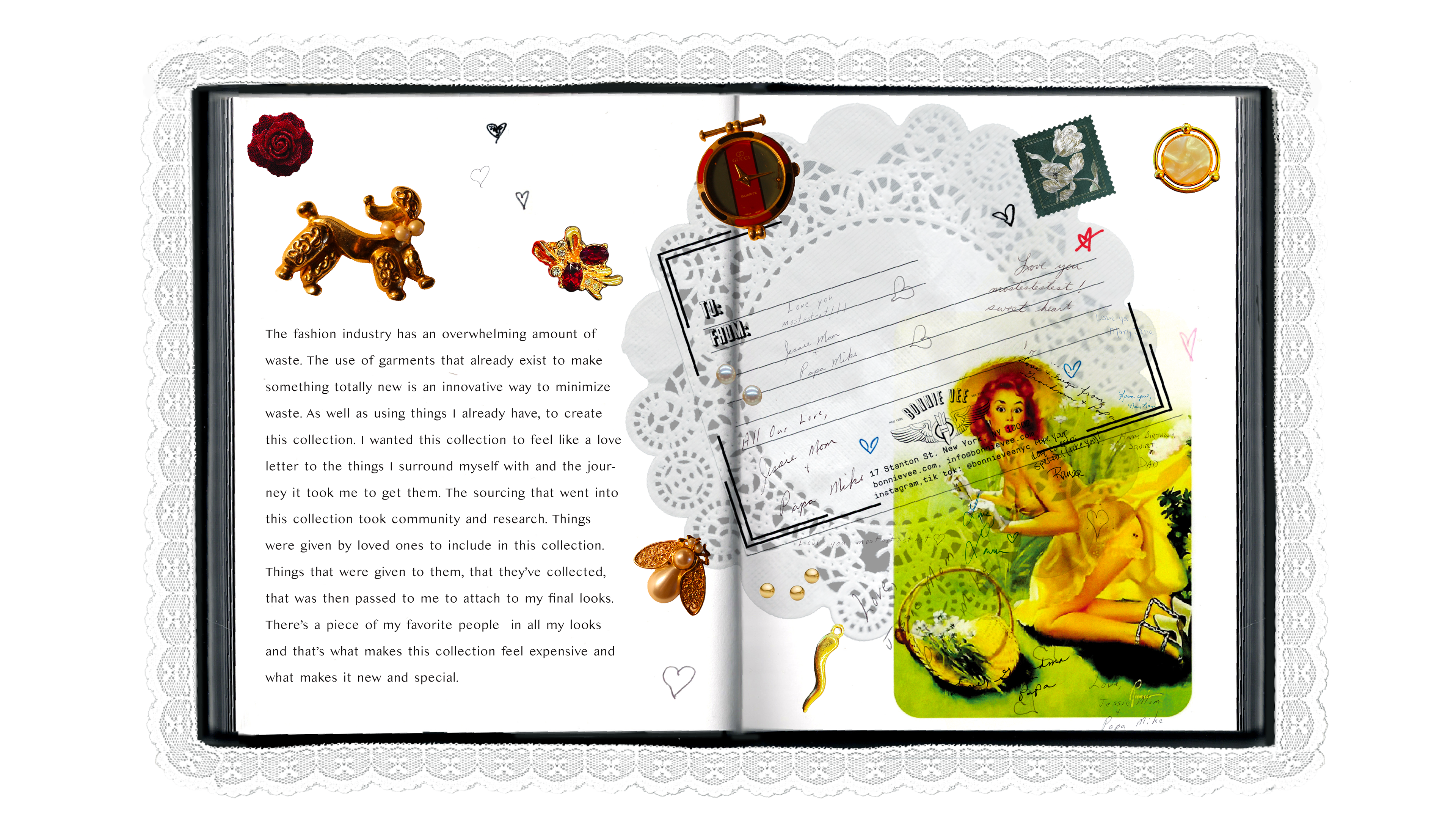 To be rich in life isn't about how much money you have, it's how you appreciate what you surrounds yourself with. Rich is a collection made from second hand materials from things given, donated, and collected throughout my travels, transformed into luxury ready-to wear. These garments allow me to take a step back and appreciate the life I've created and the things I've collected along the way.